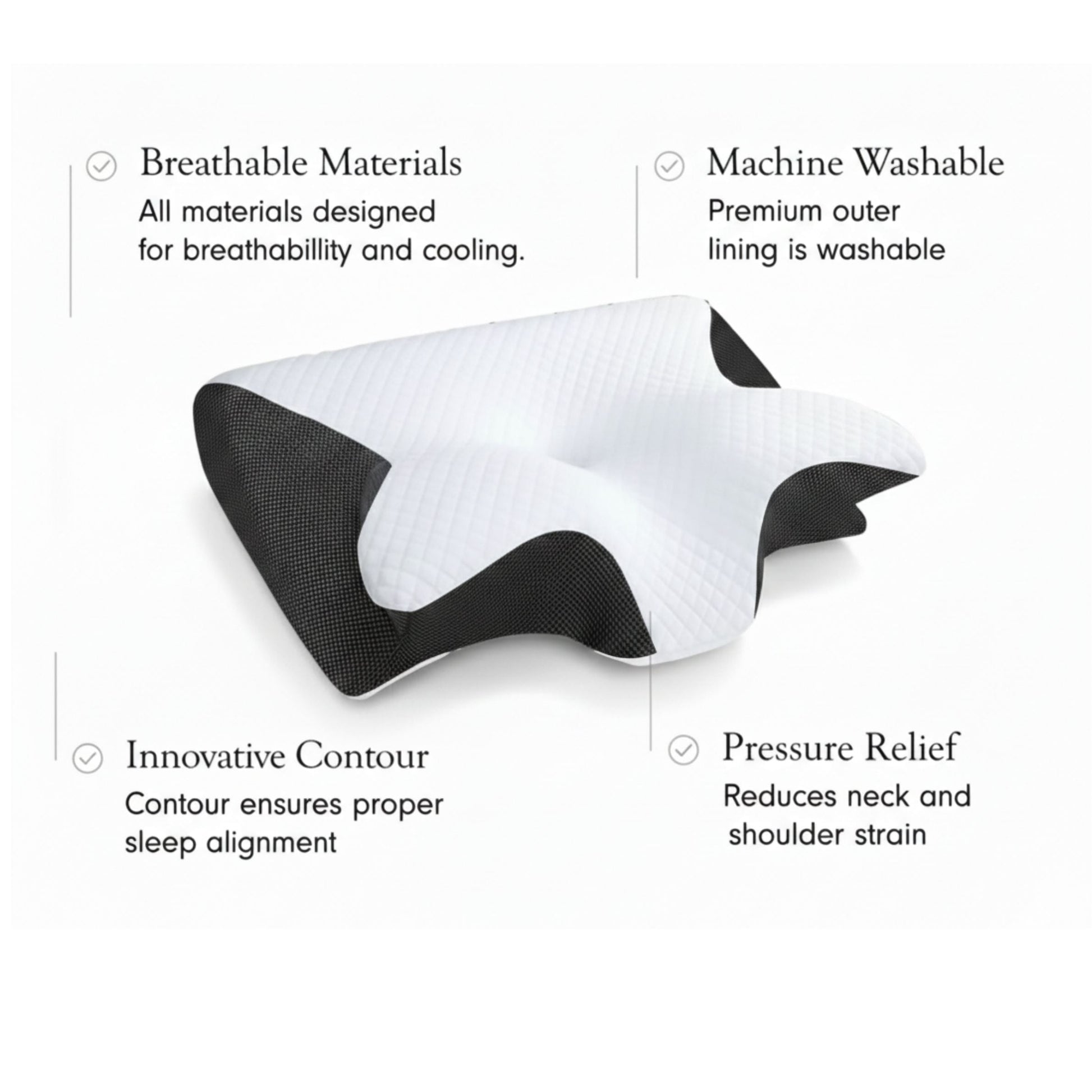 The Butterfly Pillow is specially designed with an ergonomic shape that aligns your neck and spine, providing better support than traditional flat pillows. This helps reduce neck pain and promotes better sleep posture.
